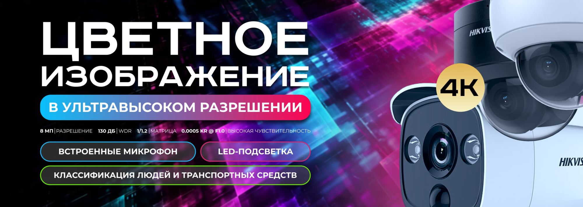 Ключевым преимуществом камер Hikvision ColorVu с ультравысоким разрешением по сравнению с другими решениями, представленными на рынке, является высокий уровень детализации и яркости изображения. Эффективность работы системы видеонаблюдения повышается не только за счет оптимальных параметров угла обзора по вертикали и по горизонтали, но и за счет функции цифрового зумирования, которая оптимально подходит для применения в 4К-системах видеонаблюдения. Это позволяет использовать 4K-новинки ColorVu для охвата больших территорий, а одна такая камера может заменить несколько обычных устройств, что помогает сократить количество оборудования на объекте и, как результат, снизить затраты на закупку, монтаж и обслуживание систем безопасности.